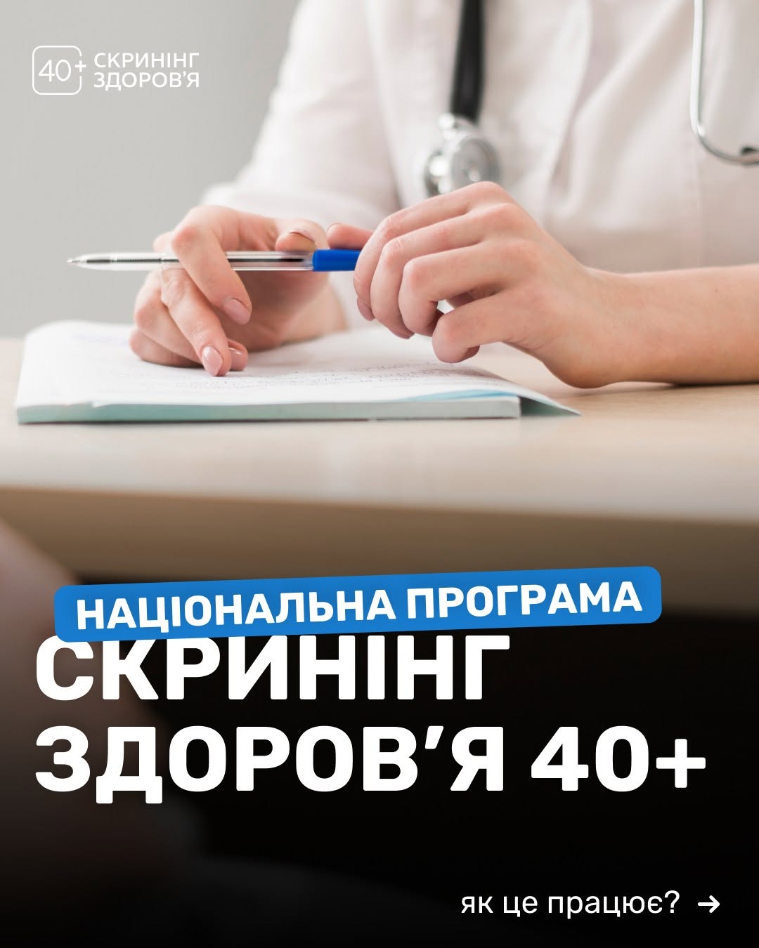 «Скринінг здоров’я 40+ дозволить українцям та українкам від 40 років і старше пройти обстеження та вчасно виявляти ризики хронічних захворювань, контролювати стан здоров’я й запобігати ускладненням, які найчастіше призводять до інвалідності чи передчасних смертей.