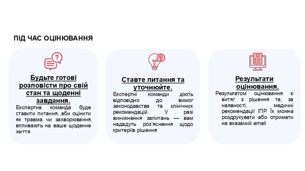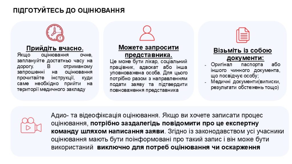 - Люди, які вперше проходять оцінювання для встановлення статусу інвалідності або ступеня втрати працездатності.