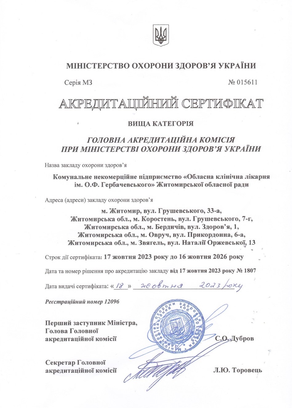 Житомирська обласна клінічна лікарня ім. О.Ф.Гербачевського